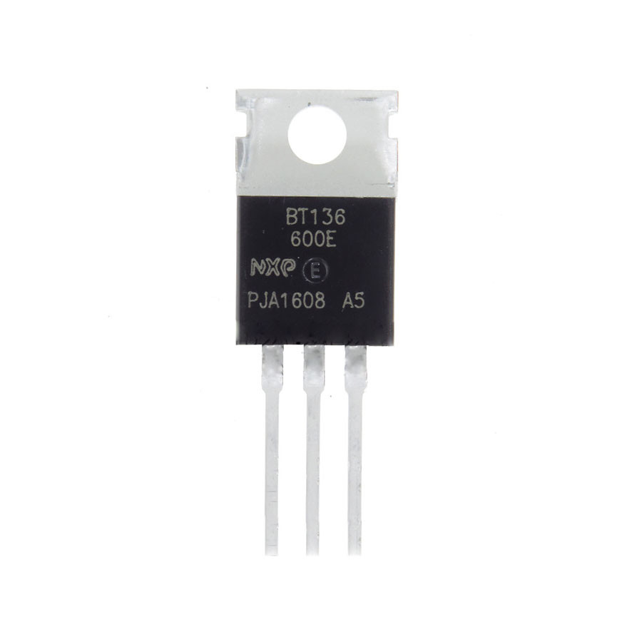 BT136 is a sensitive gate 4-Quadrant Triac (bidirectional thyristor) in a TO-220 package, featuring a 600V repetitive peak off-state voltage (VDRMcap V sub cap D cap R cap M end-sub)and a 4A RMS on-state current (IT(RMS)cap I sub cap T open paren cap R cap M cap S close paren end-sub ,It features a low 10mA gate trigger current, making it ideal for low-power AC switching, motor control, and lighting applications.